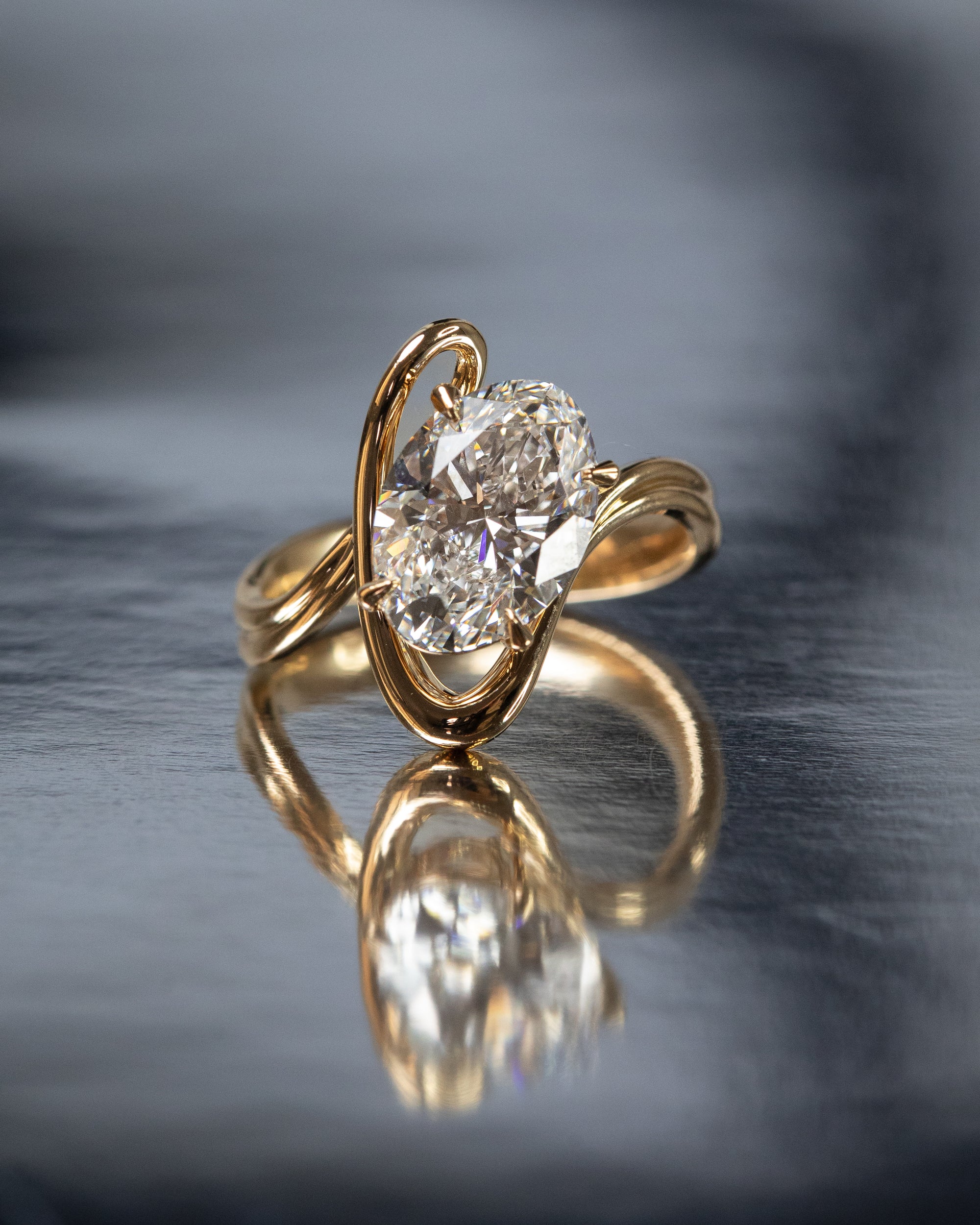 This ready-to-wear Mali Oval features a beautifully proportioned 2.00ct oval-cut diamond, encased in a fine, polished bezel. Beneath the surface, a hidden halo of brilliant cut diamonds encircles the setting—a quiet secret waiting to be discovered.